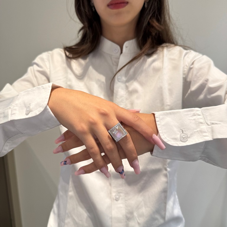 Anello in oro bianco 18kt con madreperla e diamanti