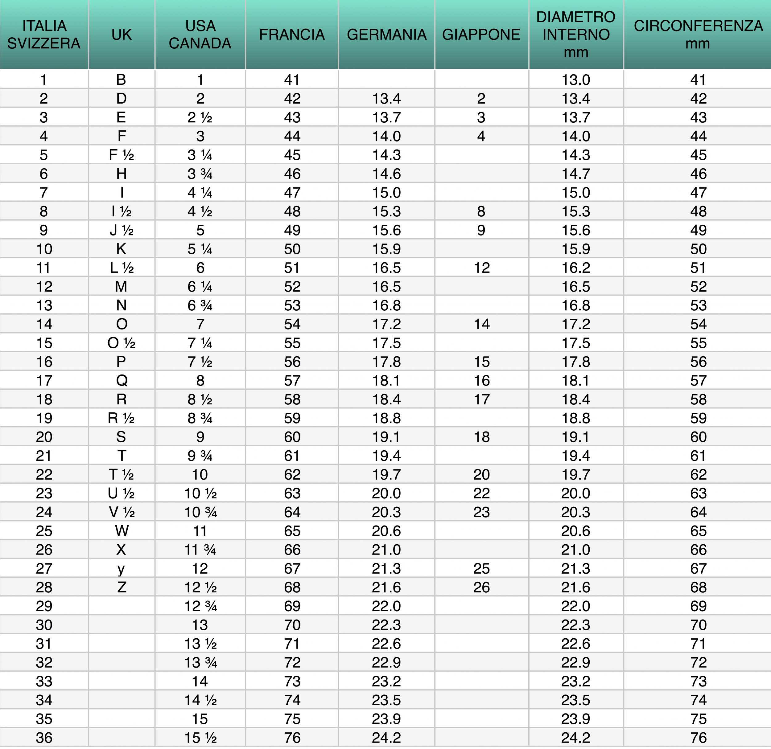 4 – Utilizzare la tabella sottostante per determinare la misura dell’anello.