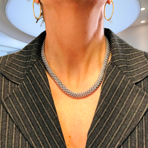 Girocollo Fope collezione Lavinia in oro bianco 18kt lungo 43 cm chiusura a scatto Fope finitura lucida Peso 61.10 gr