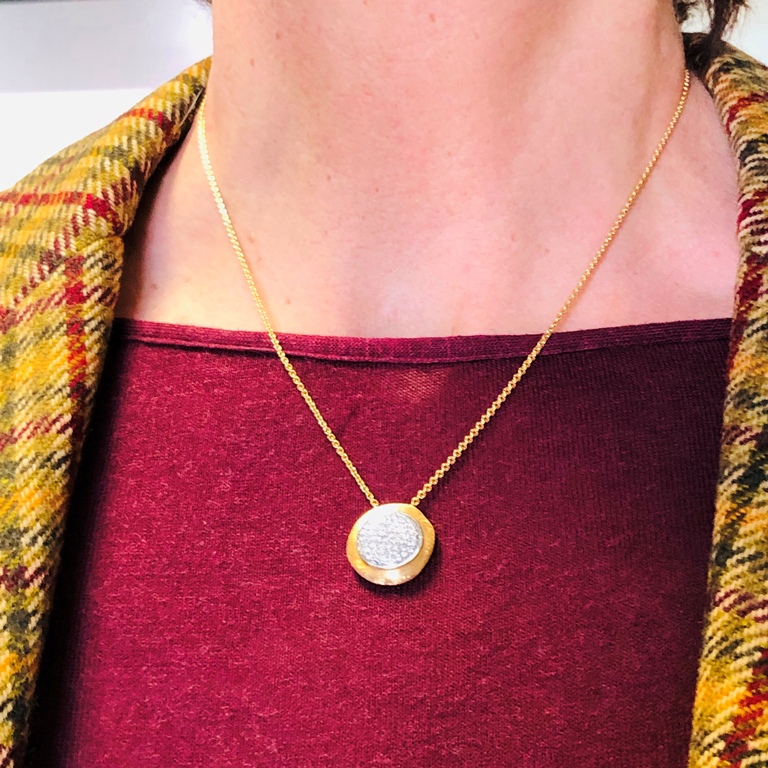 Girocollo in oro bianco 18kt Giorgio Visconti con ciondolo rotondo con pavè di diamanti