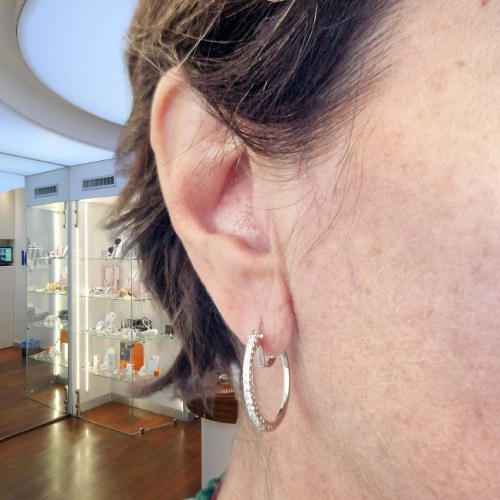 Orecchini a cerchio in oro bianco 18kt e zirconi
