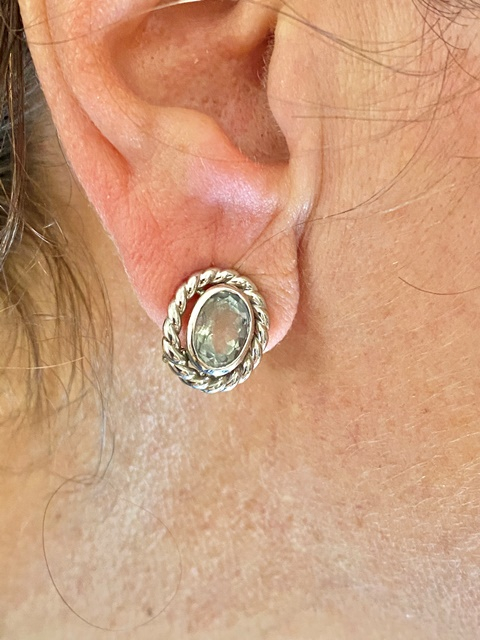 ORECCHINI A LOBO IN ORO BIANCO 18KT CON ACQUAMARINA. COMPOSTI DA DUE ACQUAMARINE OVALI KT 2.64 CONTENUTE IN UNA CORNICE IN ORO LAVORATA A CORDA. CHIUSURA AD ABBRACCIO PESO 6.60 GR DIMENSIONI 1.30 X 0.80 CM