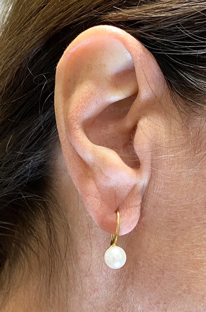 Orecchini a monachella in oro giallo 18kt con perla bianca misura dalla 6 alla 7