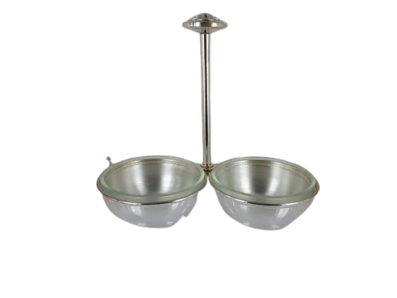 PORTA SALATINI “STELO” CON DOPPIA COPPA, INTERNO IN CRISTALLO, IN ARGENTO 800, GR.119, DIAMETRO CM 9