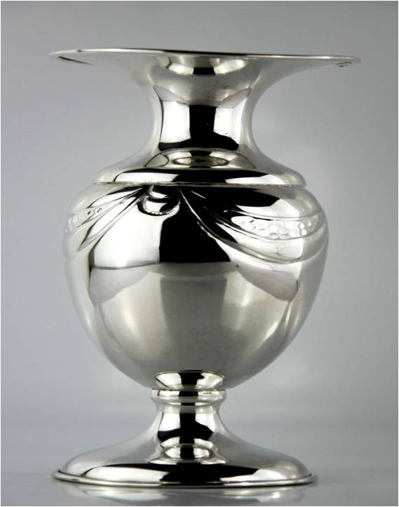 VASO CON FOGLIE STILE IMPERO CESELLATO IN ARGENTO 800